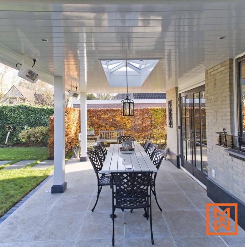 Om het terras nog comfortabeler te maken, hebben wij een design terrasheater geïnstalleerd. Hierdoor kan de veranda ook tijdens koelere dagen en avonden worden gebruikt. Het maakt van de buitenruimte een plek waar de bewoners het hele jaar door kunnen ontspannen en genieten.